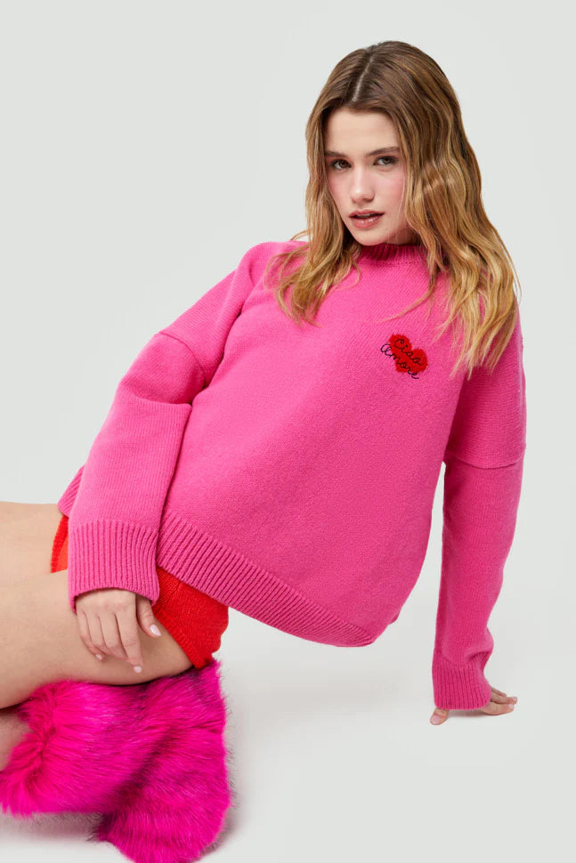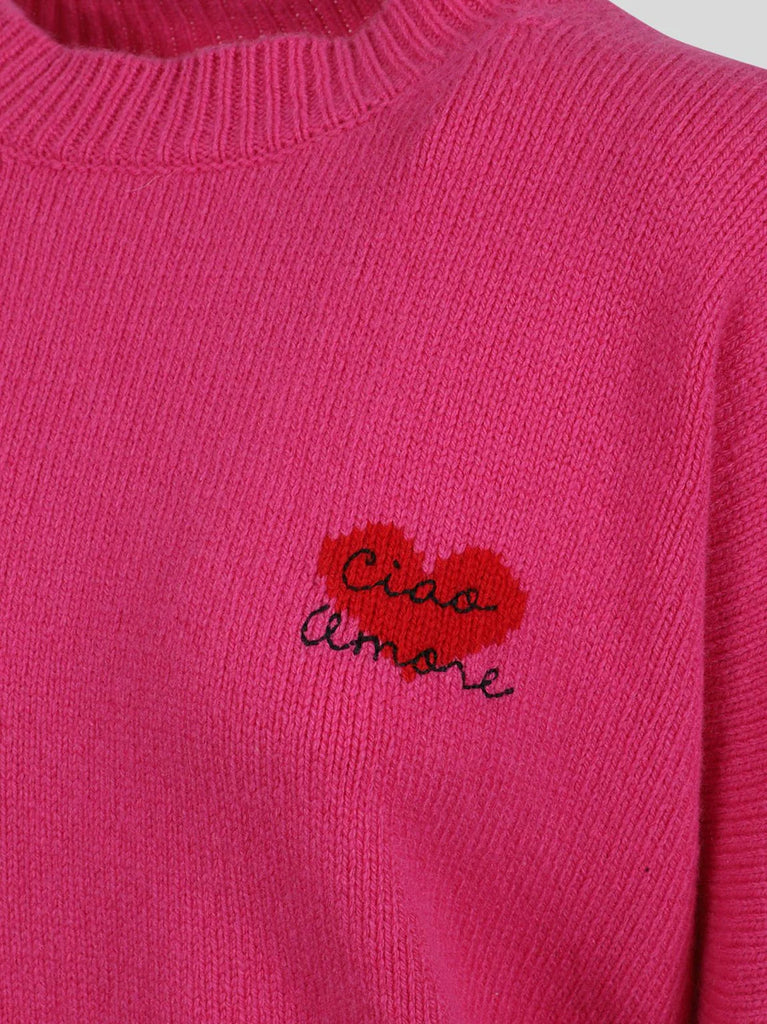 Heartbeat pullover girocollo loose fit con mini logo "Ciao Amore" ricamato.